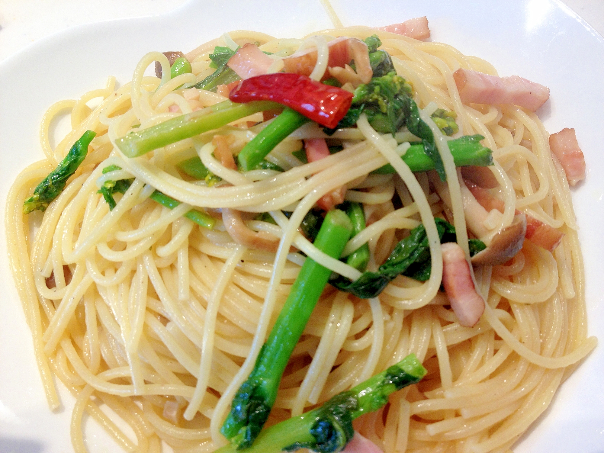 菜の花としめじとベーコンのバターしょうゆパスタ レシピ 作り方 By johncompany 楽天レシピ