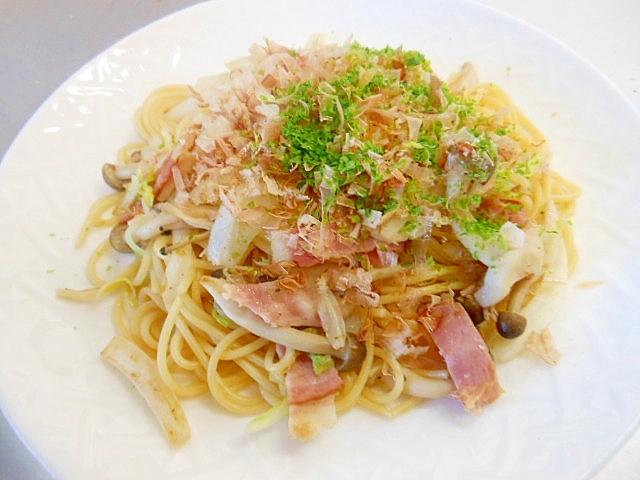 ベーコン しめじ パスタ 昆布茶